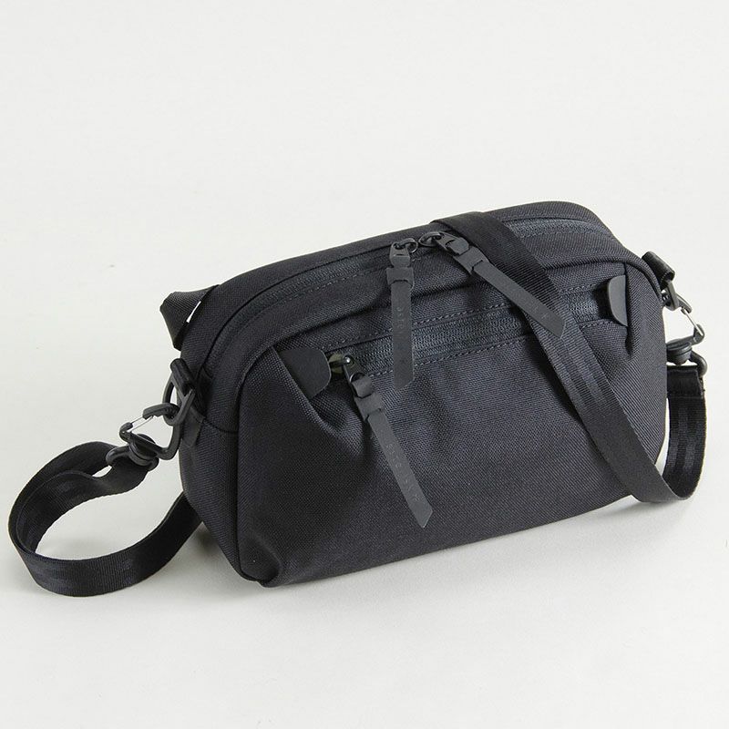 本体片面にはファスナーポケットが付き、その対面には小物収納に適したメッシュのオープンポケットとキーハーネスが付属。