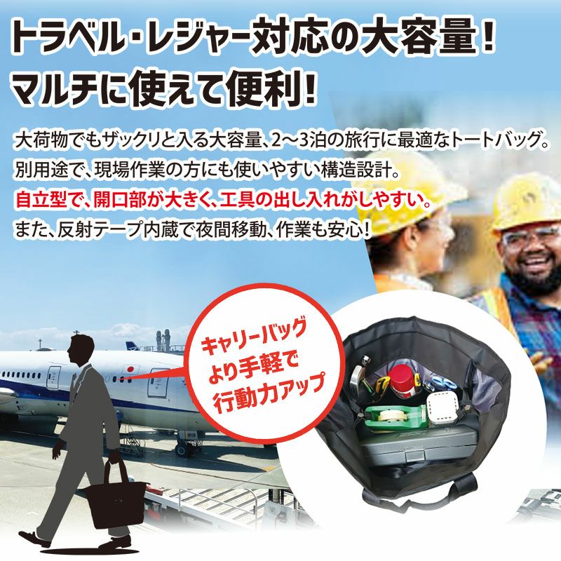 商品説明大荷物でもザックリと入る大容量、2〜3泊の旅行に最適なトートバッグ。