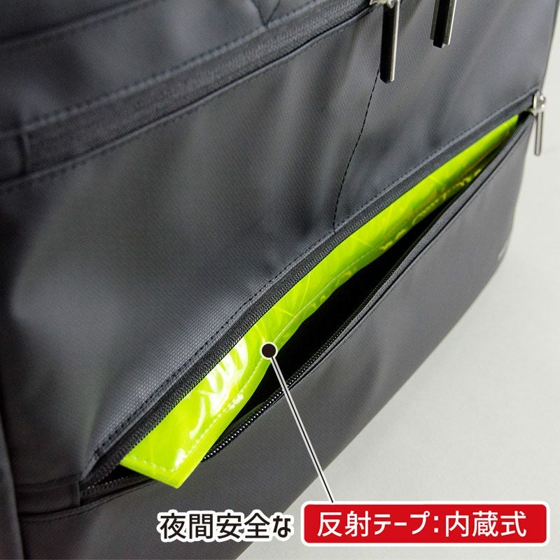 通常反射テープは収納し、作業時や通勤時のみ外装することができる。