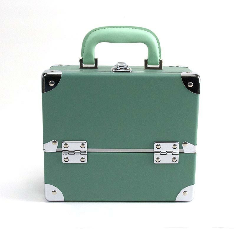 レトロっぽくて可愛いグリーンにしました。 開けた時に半分空洞があるので化粧水が収納できてラッキーです! 開いた内側がミラーになってたらもっと良かったかも・・・