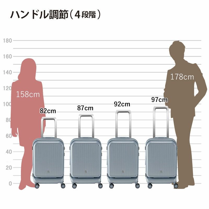 フリクエンターのアウラ4輪キャリーのキャリーハンドル高さ参考イメージ