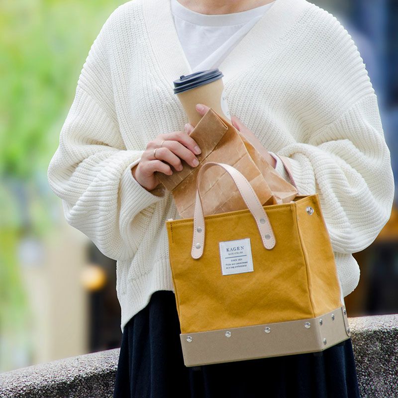 安定性に優れた、しっかりとした底なので、お弁当や、飲み物を立てたまま入れることができる。倒したくない中身を入れるには最適。