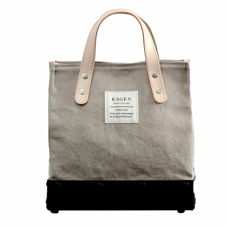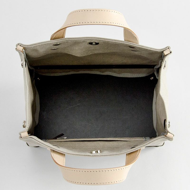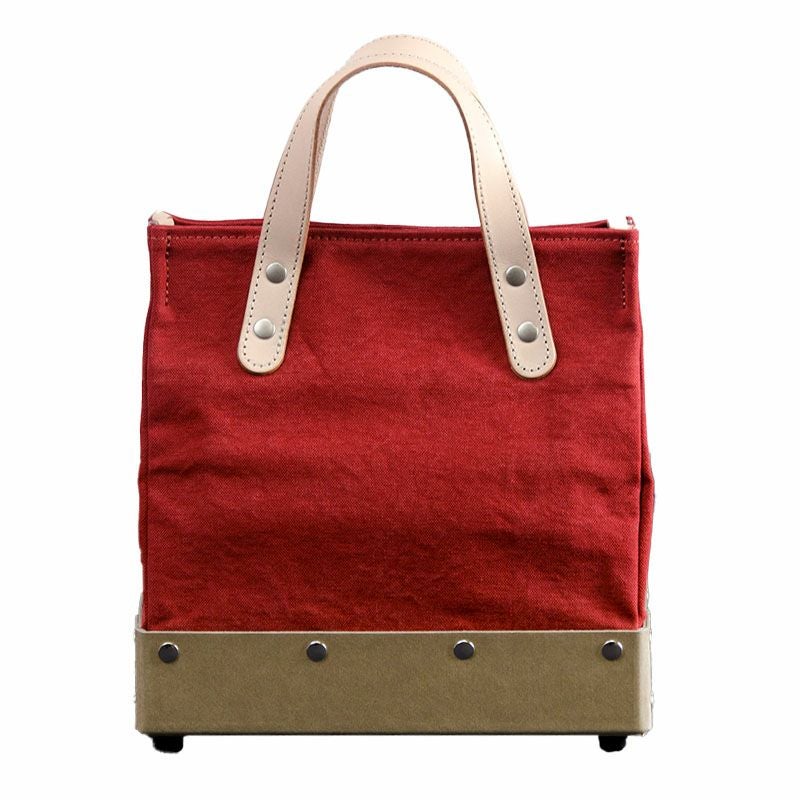 パスコ(再生紙)に帆布。そして革とエコ素材のハイブリット商品。 上部は帆布で底部は箱と面白い組み合わせ。何を入れるかはあなた次第。 「唯一無二」の愛らしいミニトート。