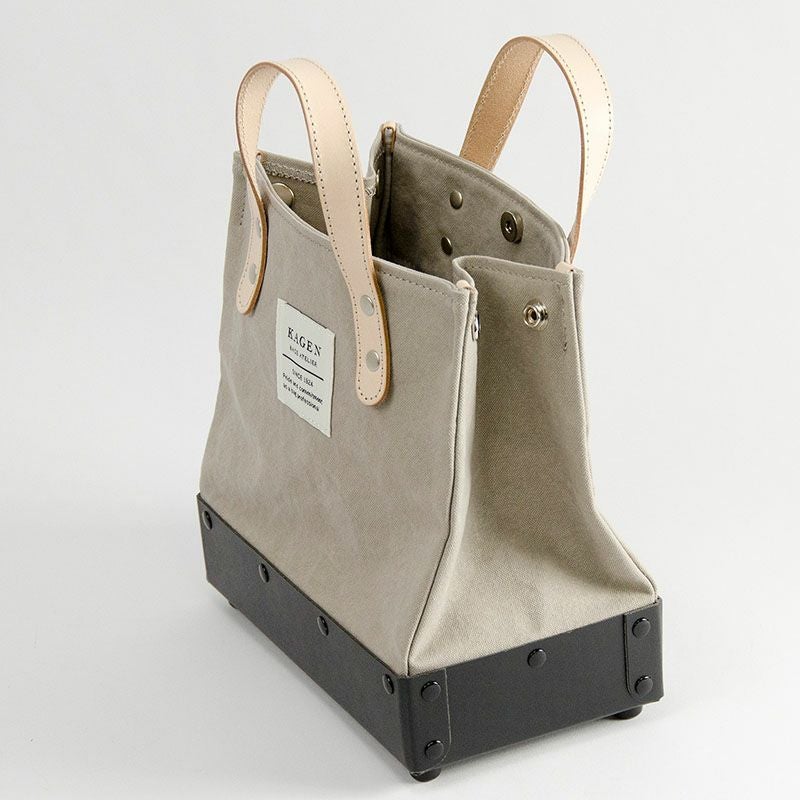 素材本体(10号帆布/パラフィンバイオ加工)、付属(ヌメ革)、底箱(PASCOパスコ)
