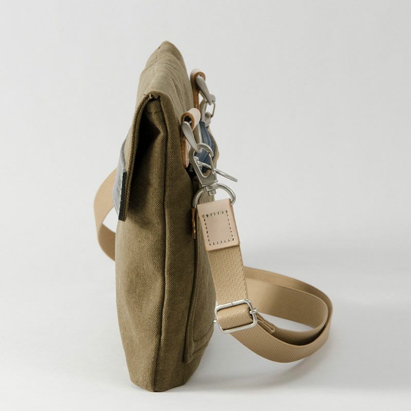 お散歩や旅行のお供に丁度良いサイズです。 帆布に革付属。その色のコンビネーションは 装いも気分もカジュアル感 壊 - KAI サコッシュカブセ 嘉玄 型番1-151