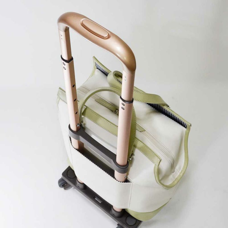 商品説明「旅行やお買い物で使えるおしゃれキャリーがほしい」のお声に応えて開発のキャリーカート付きのトートバッグ。