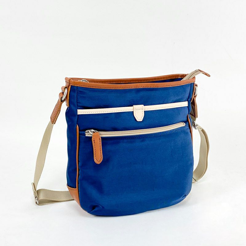 ポケットも多数、持ち手も持ち手も備えており、機能性も◎ ところどころにあしらえた牛革とステッチがアクセントに。