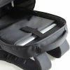 内装 前にプックリ張り出した前ポケット。上部には小物ポケット。本体にはクッション材入りのPCポケット、メッシュポケット付き。背面のテープでキャリーに通してセット可能。
