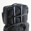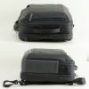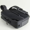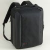 内装 前にプックリ張り出した前ポケット。上部には小物ポケット。メインルームはメッシュポケットや、ファスナーポケット付き。後方にはクッション材入りのPCルーム。背面のテープでキャリーに通してセット可能。横向きにしてブリーフ、ショルダーとして使用も可能。