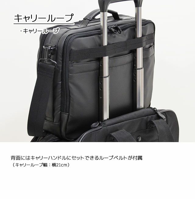 ネオプロ・コミュートライトのショルダーLは、背面にはキャリーハンドルにセットできるループベルトが付属。キャリーループ幅:横21cm。