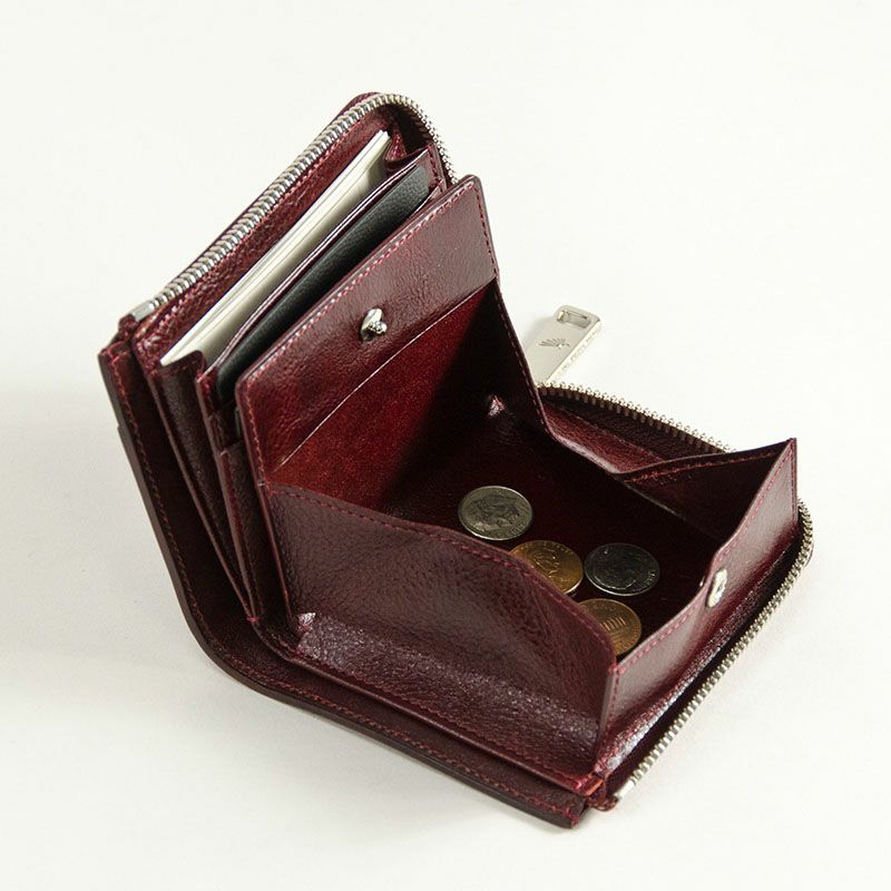 商品説明2枚のカード収納ポケットと、マチ付きのカードポケットがあるのでカードの収納は十分。小銭入れは立体的に大きく口を開くので、全体が見渡せて取り出しやすい。小銭入れの下側にはカードなどが入るフリーポケット付き。札入れスペースも付いた収納力抜群のL型ファスナー付き二つ折り財布。