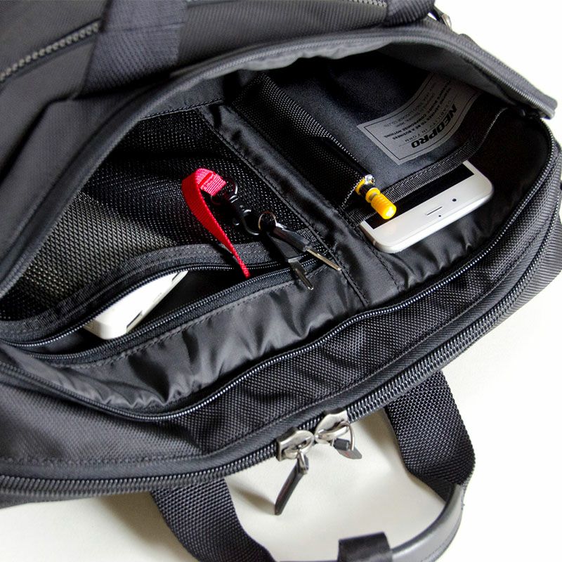 メインルーム: オープンポケット中(メッシュ)x2、PCポケット・タブレットポケット(クッション材入り) ネオプロの3wayブリーフ 型番2-118 NEOPRO RED POINT