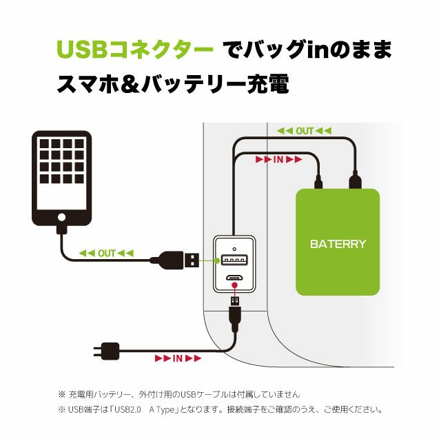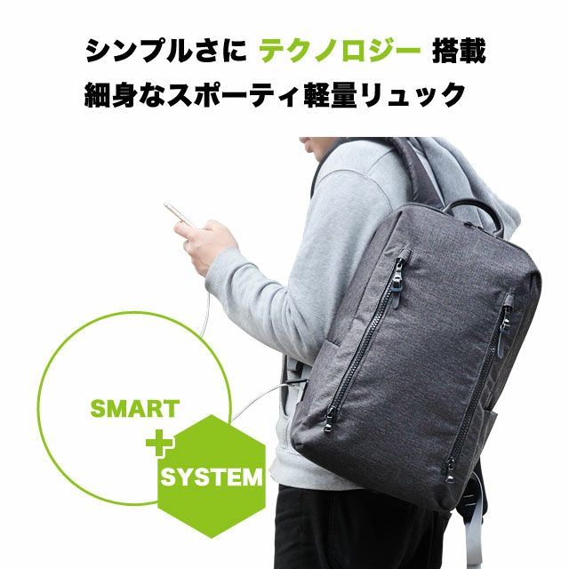 USBコネクターでバッグインのままスマホとバッテリー充電 Plus Narrow2 リュック 型番2-850 プリュス ナロー2