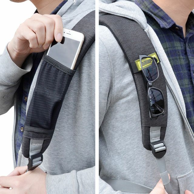 リュックベルトのポケットにスマホを入れたり ストラップにメガネをかけておくことも可能 Plus Narrow2 リュック 型番2-850 プリュス ナロー2