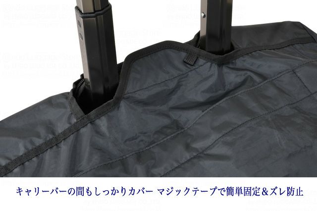 ネオプロのAmePRO レインカバー(横型)は、キャリーバーの間もしっかりカバー マジックテープで簡単固定&ズレ防止