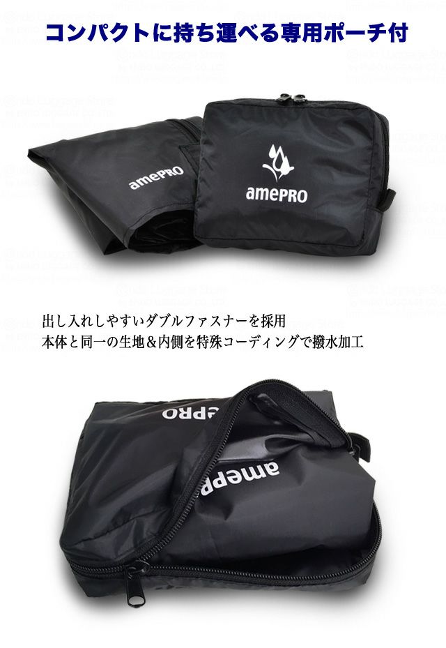 ネオプロのAmePRO レインカバー(横型)は、雨の日も快適!キャリーを守る 防水レインカバー。色移りしにくいナイロンタフタ生地使用。水を弾き、柔らかく耐衝撃性があり収納や長期利用に適しています。内側にも特殊コーティングを施ししっかりダブルガード。
