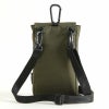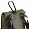 マグネットホックで留めるフラップ付き。吊り下げも可能なカナビラ付き。