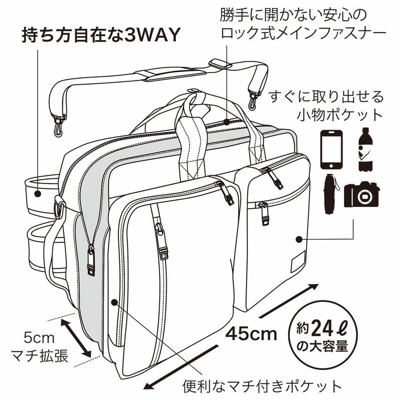 出張に適した3WAYバッグ(幅45cm)から、通勤向けのトートや機能的なリュック、コンパクトなショルダーまで、幅広いスタイルをラインナップ。