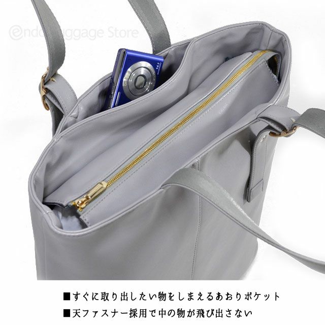 すぐに取り出したい物をしまえるあおりポケット 天ファスナー採用で中のものが飛び出さない プリュス ノブラン トートバッグ Plus+ -Noblan- tote bag 縦 2-640