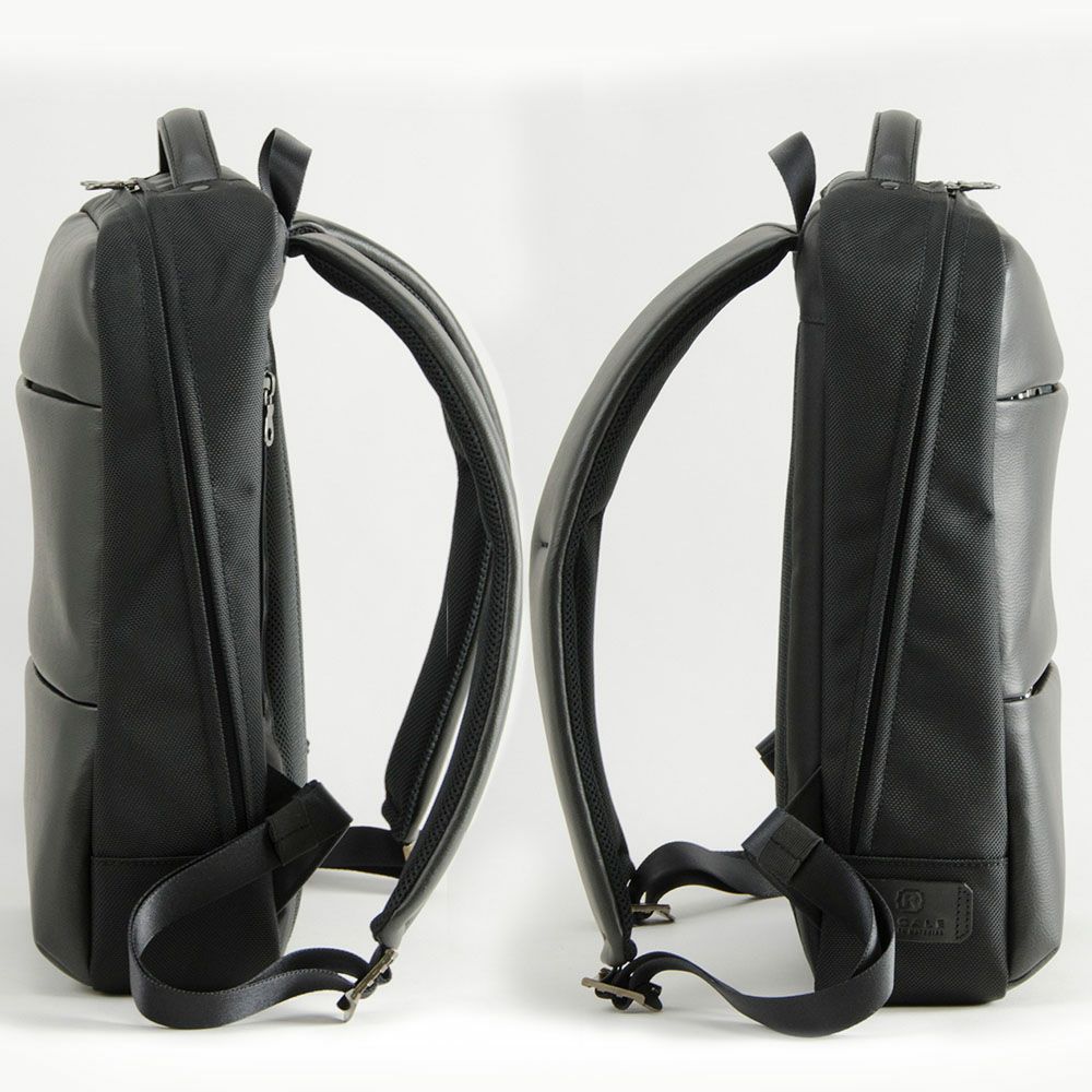 商品説明さわやかスポーティスッキリとした細マチのスマートリュック。 隠しファスナーでスッキリ!! 軽快でリッチな柔らかなレザー風 ソファーにも使用される高品質なソフトレザー(PU)を贅沢にもフェイスにたっぷり使用し、スッキリとしながらも主役的存在感は抜群。ファスナーを隠し形状にする事により、ファスナーレスな意匠がデザインの特徴となる軽快でスポーティなアイテム。 ■本体内部には、クッション材を使用したPCポケット、小さな手帳などが入る小分けポケット付き。 ■本体背面に、側部から財布や携帯を収納できるファスナーポケット付き。 ■リュックベルト付根に角度をつけて、背負った際に自然と肩幅に開く設計。 ■トップハンドルとは別に設けたフックにより、机やトイレのドアなど吊るす際に便利。 ■本体内部には、クッション材を使用したPCポケット、小さな手帳などが入る小分けポケット付き。 ■本体は側面まで大きく開くが、荷物がこぼれ出ないマチ付き。 ■背面ポケット上部は、キャリーハンドルに通せるループとなるファスナー付き。 ■底面には床との直接の設置を軽減する底足付き。
