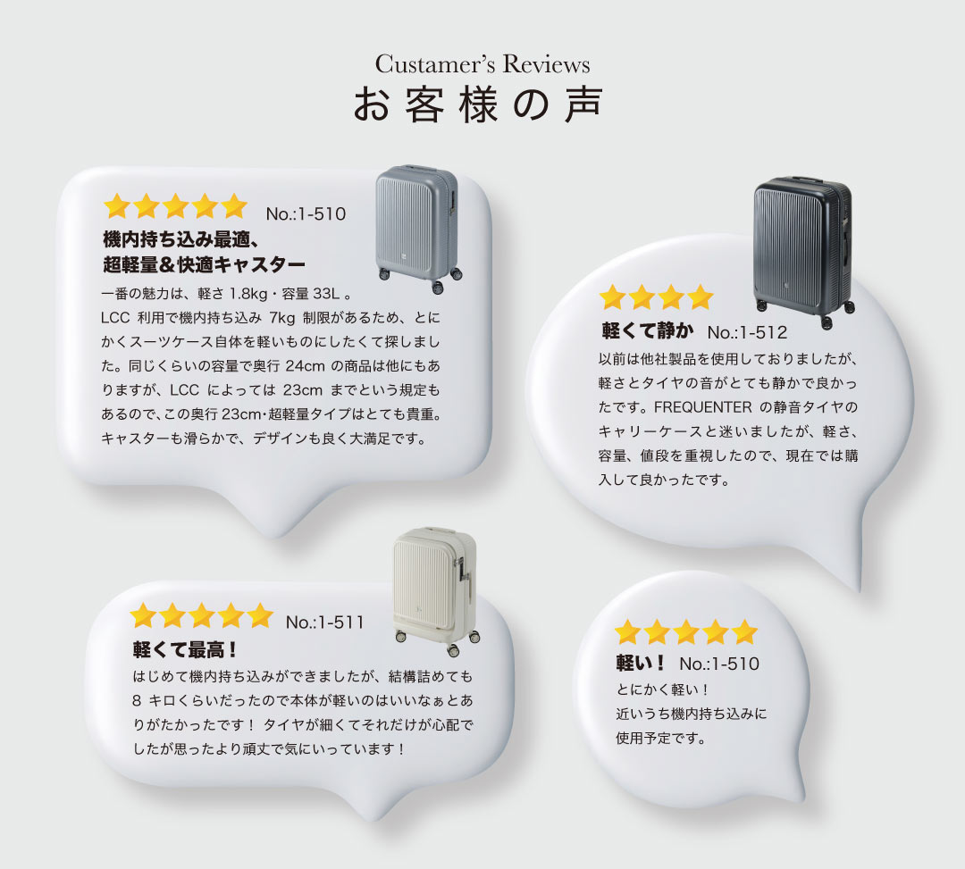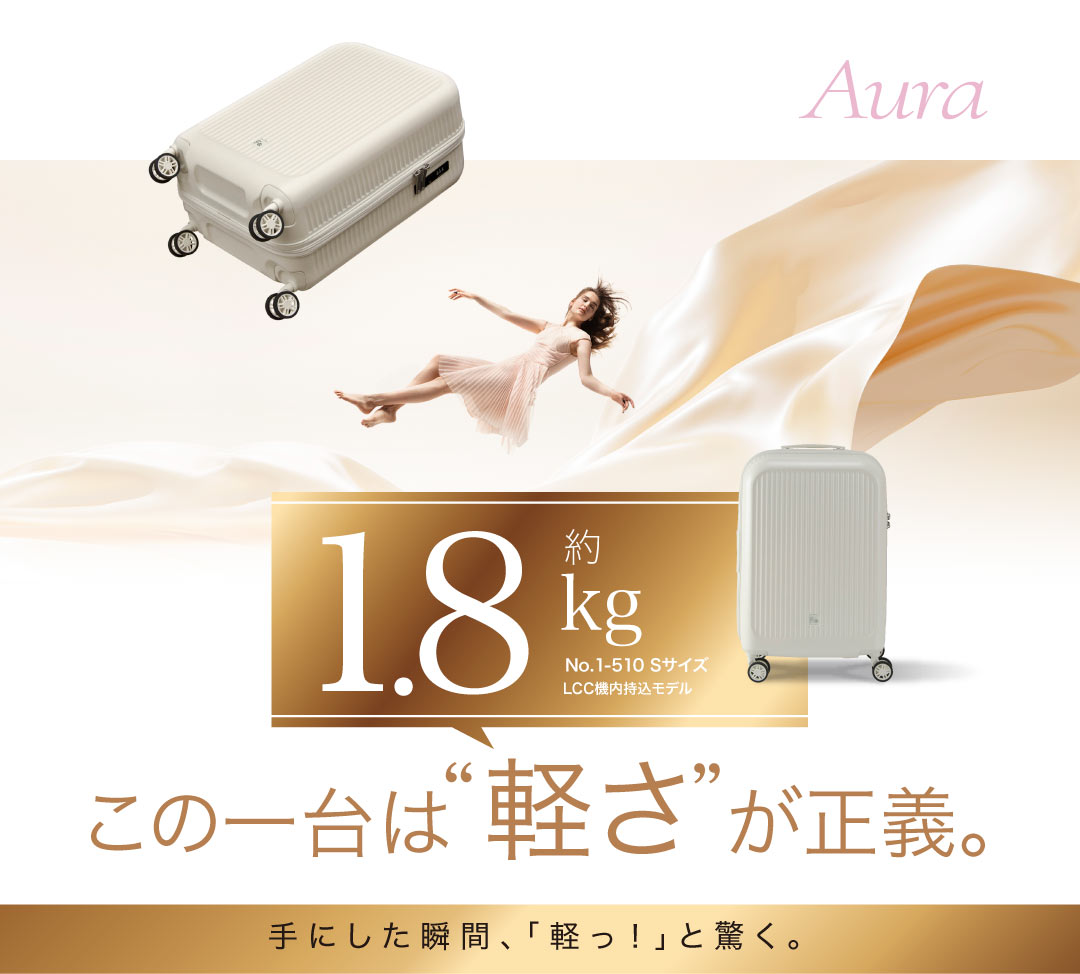 フリクエンターのアウラ4輪キャリー、業界トップクラス、軽さの新基準。