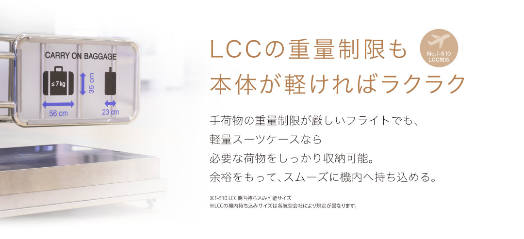 LCCの厳しい重量制限も本体が軽ければラクラク