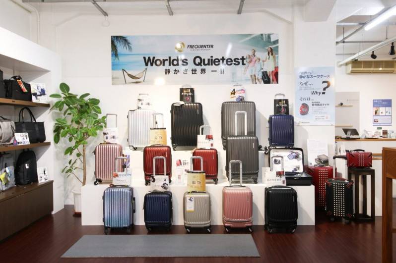 特許取得のタイヤを搭載した走行音の静かなスーツケース「FREQUENTER」。世界一の静かさを、是非店頭で体感してみてください。