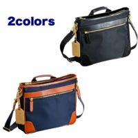 カラーバランスがオシャレなショルダーバッグです! 紺色と革のオレンジのような茶色、金色のファスナーで上品な雰囲気があります。 良いお買い物ができました。 -